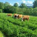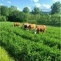 - wir halten 20 Ochsen und 14 Kühe, mit muttergebundener Aufzucht, einmal Melken, Heufütterung und Weidehaltung